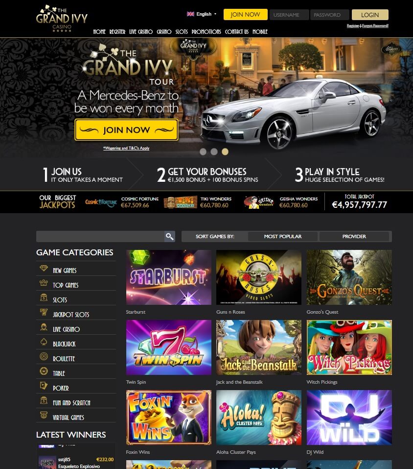 From a design perspective, no other online casino in the world can match Grand Ivy Casino in the luxury stakes. Every aspect of the website carries a real touch of class, as the rich black backdrop is complimented with images of cars, cash, jewellery, and various other things associated with the high life. If it is a high-end casino experience you’re after, Grand Ivy Casino steps up to the plate and delivers just that.